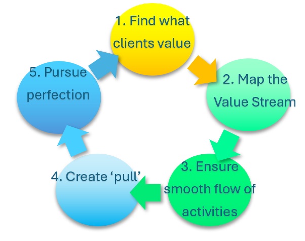 The 5 principles form a continuous loop, starting with finding what it is that your clients value.